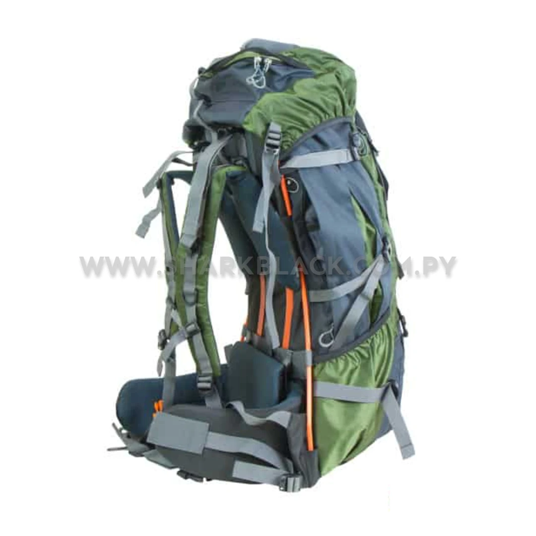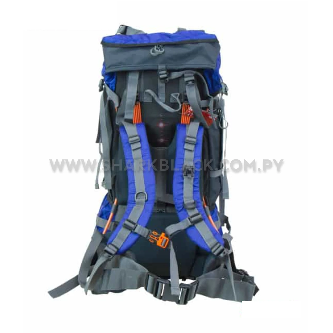 Incluye correas de ajuste, sistema para fijar saco de dormir, múltiples bolsillos organizadores y un respaldo acolchado que mejora la ventilación. La varilla de aluminio posterior brinda mayor estabilidad y soporte al caminar en terrenos irregulares.