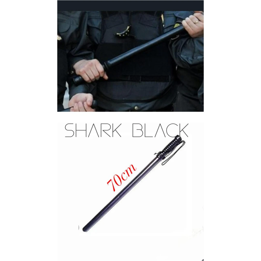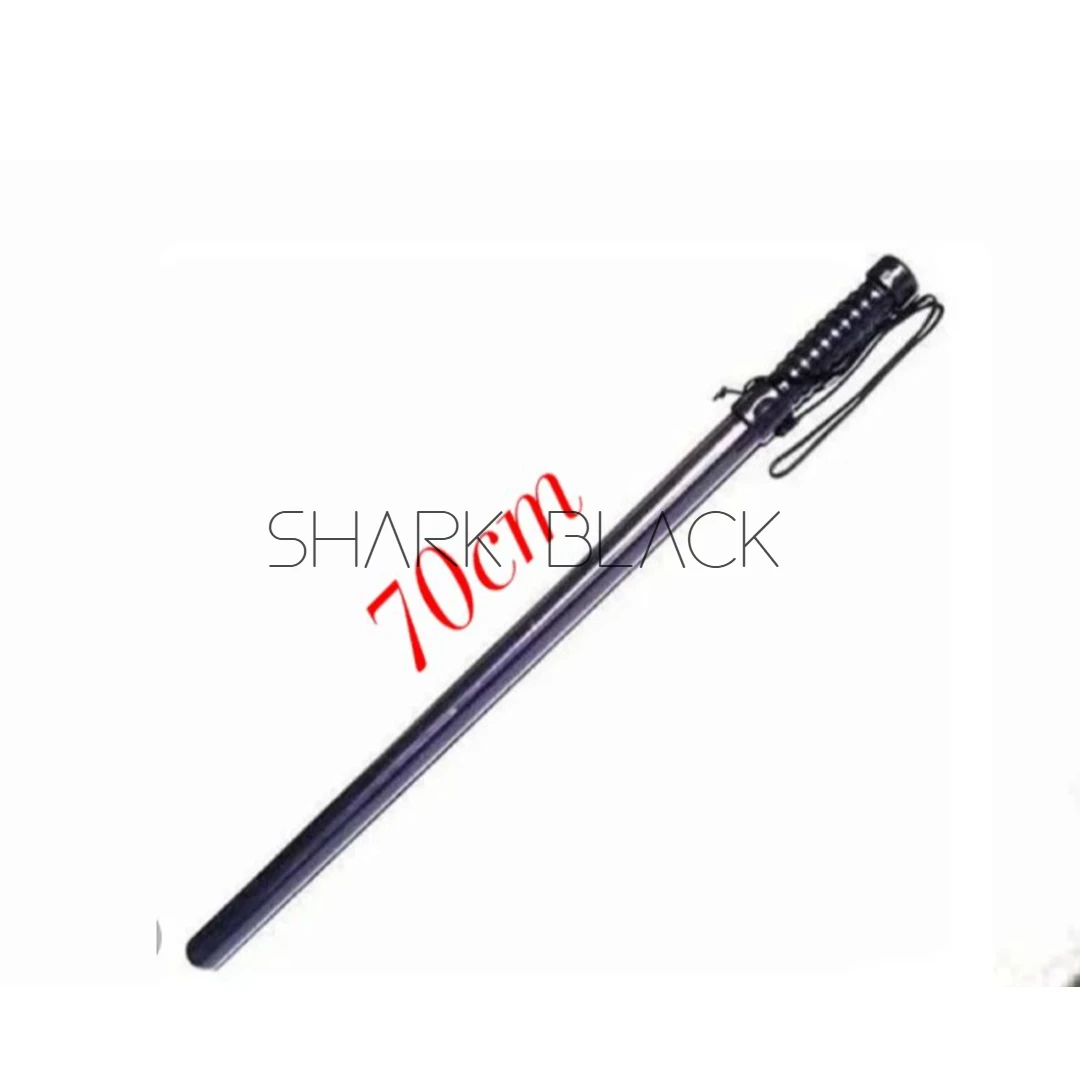 Cachiporra de polímero de 70 cm con mango texturizado y correa de sujeción. Ideal para seguridad.