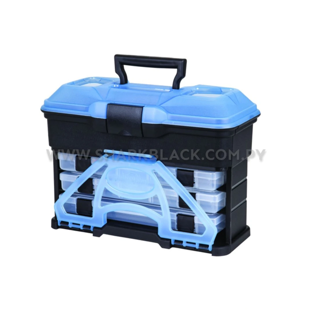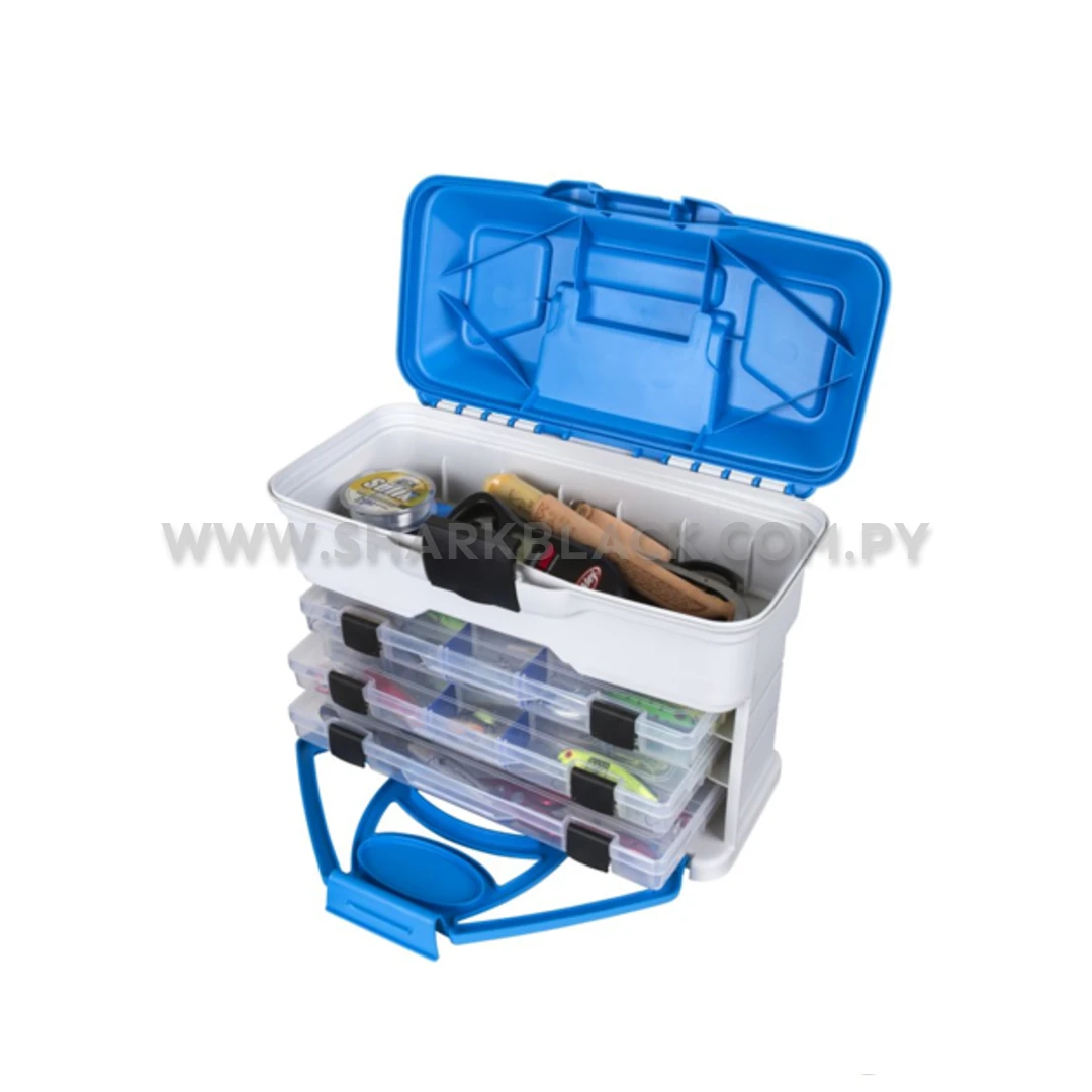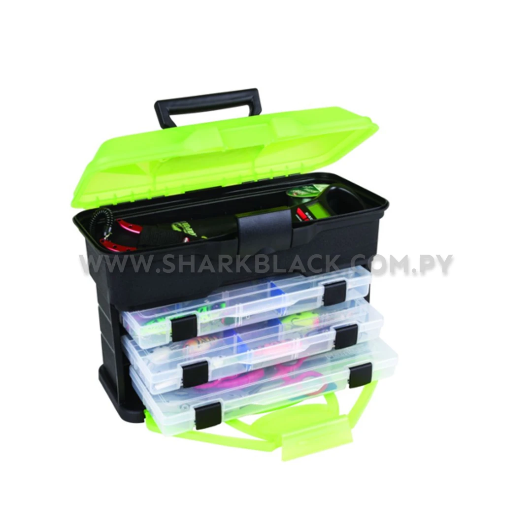 Este modelo integra tres cajas internas tipo “utility box”, perfectas para ordenar señuelos, anzuelos, snaps, giradores y otros accesorios esenciales. La tapa superior reforzada y el cierre frontal de alta resistencia aseguran estabilidad incluso en terrenos difíciles.