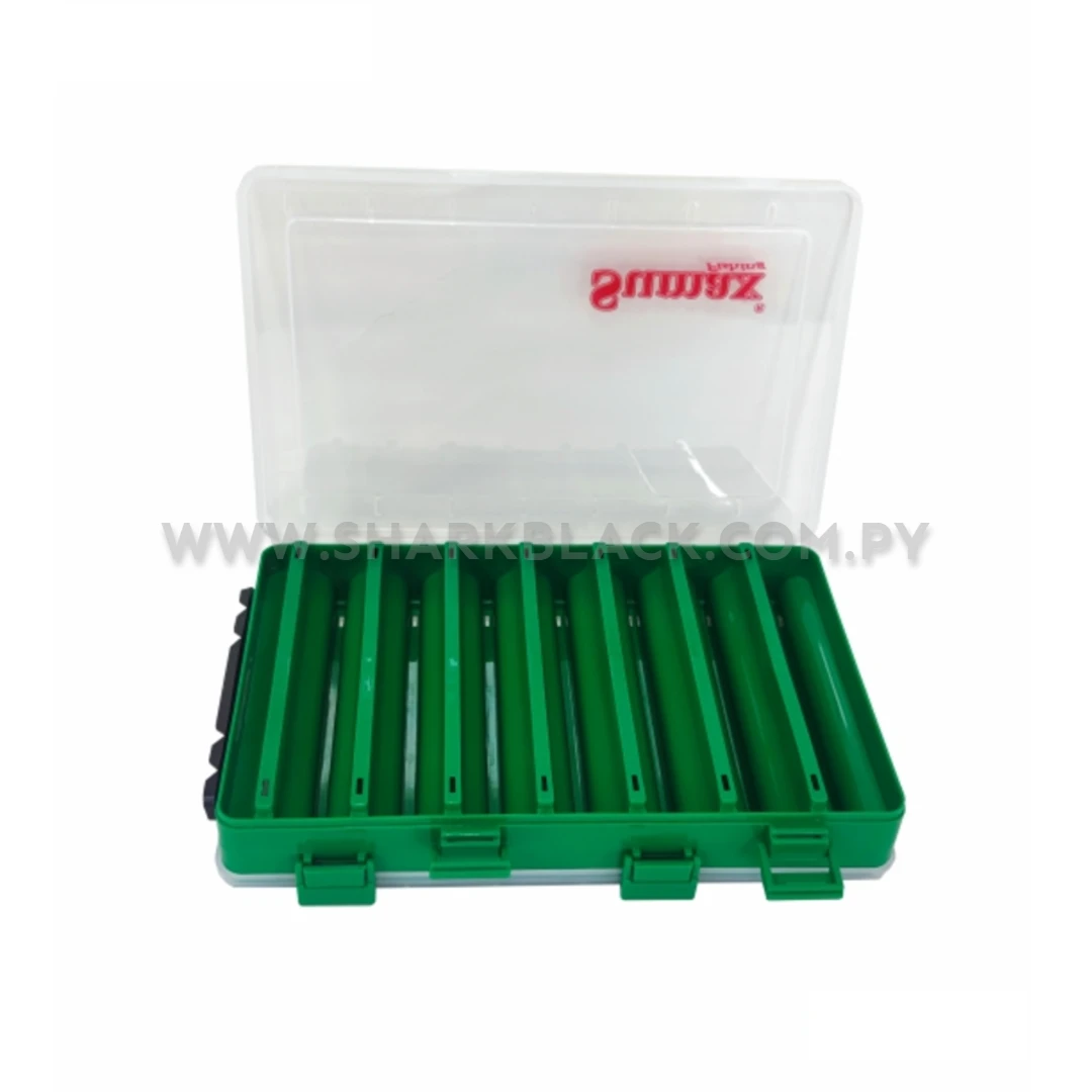 Cuenta con 14 divisiones internas especialmente diseñadas para ordenar iscas artificiales, triples, giradores y pequeños repuestos de pesca. Su diseño liviano facilita el transporte y su tapa transparente permite visualizar el contenido sin necesidad de abrirla.