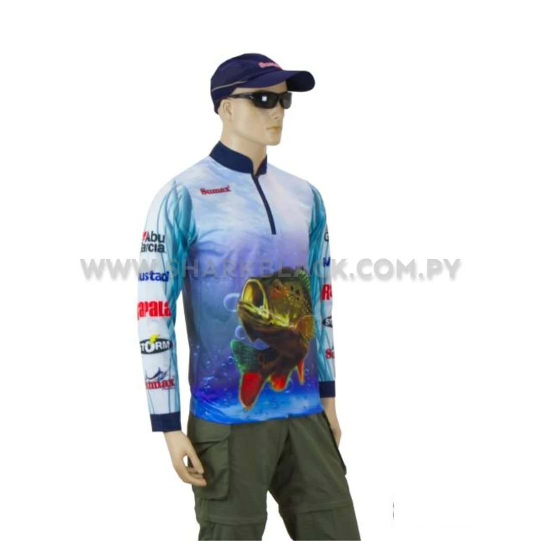 Su diseño de manga larga presenta un estampado en 3D de tucunaré con colores vibrantes, ofreciendo un look moderno y llamativo. Incluye cuello alto con cierre corto de cremallera para mayor ajuste y confort. Disponible en talles desde S hasta XXXL, se adapta a todo tipo de pescadores y actividades outdoor.