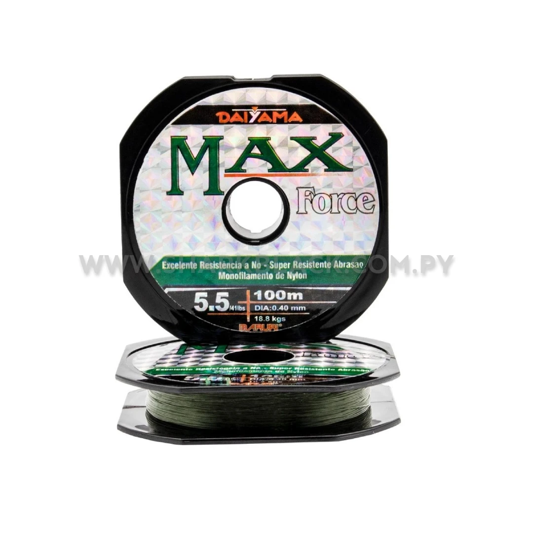 Incluye además línea multifilamento Max Force 8X de 100 m, reconocida por su durabilidad, nula elasticidad y excelente deslizamiento en el lance.