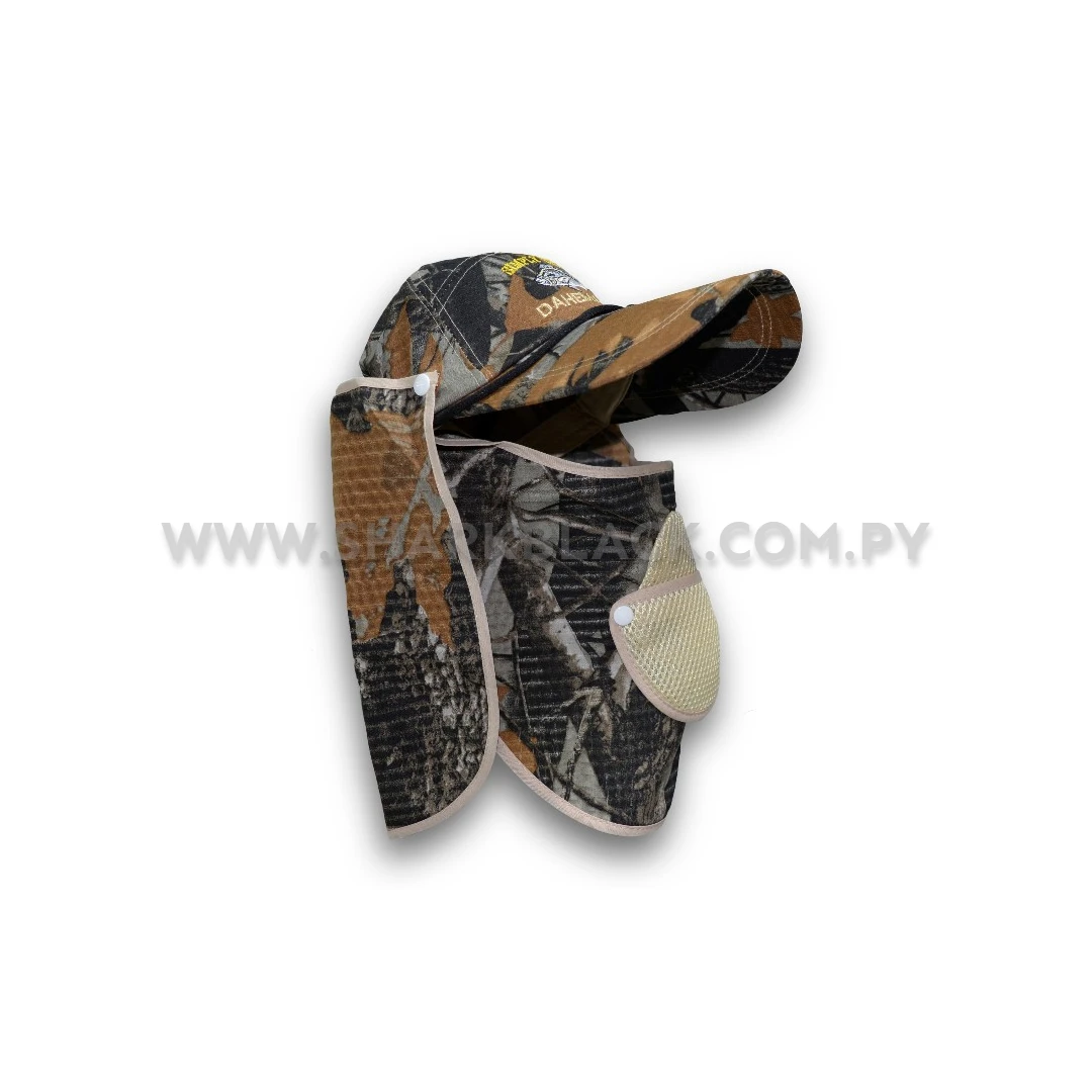 Gorra camuflada con protección solar – Tapa cuello y rostro, ajustable y transpirable.