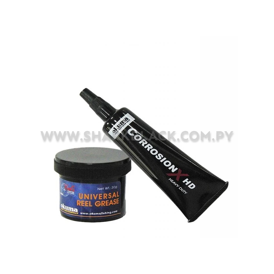 Contiene aceite anticorrosivo HD, grasa universal para reels y el exclusivo kit de limpieza Okuma Reel Maintenance Kit, permitiendo un mantenimiento completo tanto en partes internas como externas. Su fórmula avanzada previene la corrosión, elimina residuos y mejora la suavidad del sistema de freno, engranajes y rulemanes.