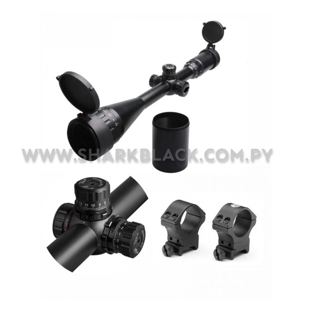 Cuenta con sistema AOEG (Ajuste de Paralaje Iluminado en Rojo y Verde), torre de ajuste de elevación y deriva de alta precisión, tapas abatibles para protección del lente y montura táctica incluida compatible con riel de 20 mm. Ideal para rifles de aire comprimido, airsoft, caza y tiro deportivo de larga distancia.