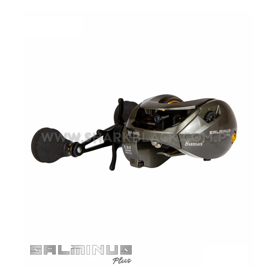 Disponible en versiones de manivela derecha e izquierda, el Salminus Plus SMP-9000-D es perfecto para quienes buscan un reel versátil y robusto para pesca deportiva.