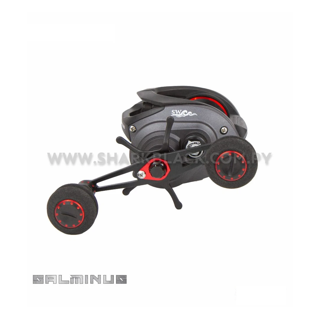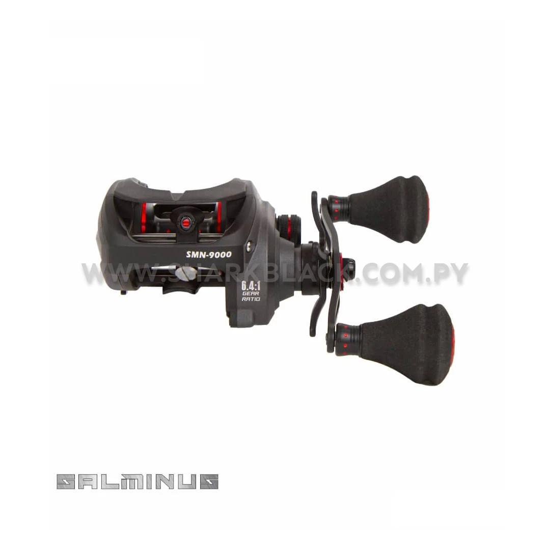 Su diseño en color negro con detalles rojos le otorga un estilo moderno y agresivo, ideal para quienes buscan no solo funcionalidad, sino también estética en su equipo. Disponible en versiones de manivela derecha (SMN-9000R) e izquierda (SMN-9000L), se adapta a las preferencias de cada pescador.