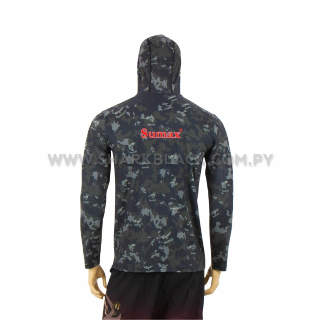 Su diseño de manga larga con capucha proporciona mayor cobertura en cuello y cabeza, reduciendo la exposición solar. El estampado camuflado le otorga un estilo moderno y deportivo, mientras que el logo Sumax bordado resalta la calidad de la prenda. Disponible en talles desde S hasta 4XL, se adapta a todo tipo de pescadores y actividades outdoor.