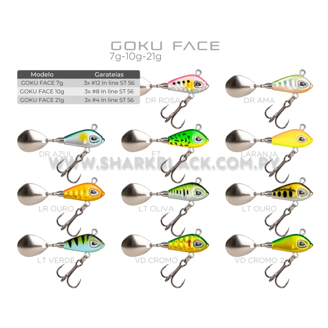 El señuelo Kawana Goku Face es una opción versátil y altamente efectiva para la pesca de depredadores, disponible en pesos de 7g, 10g y 21g para adaptarse a diferentes condiciones y profundidades.