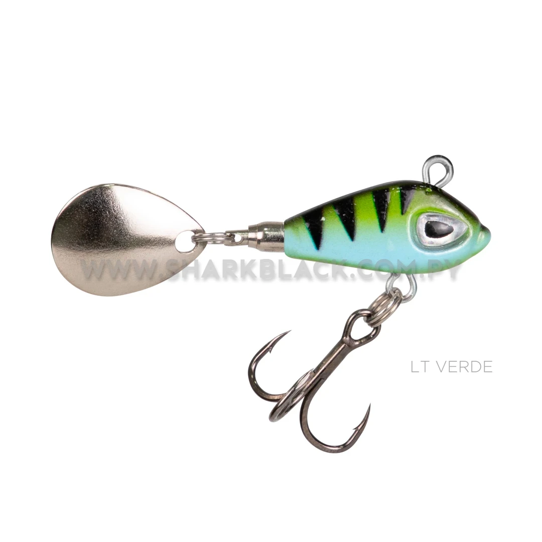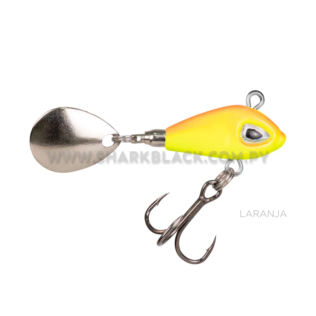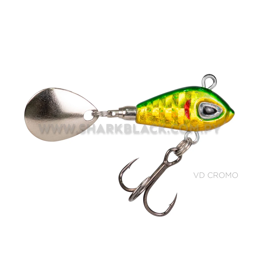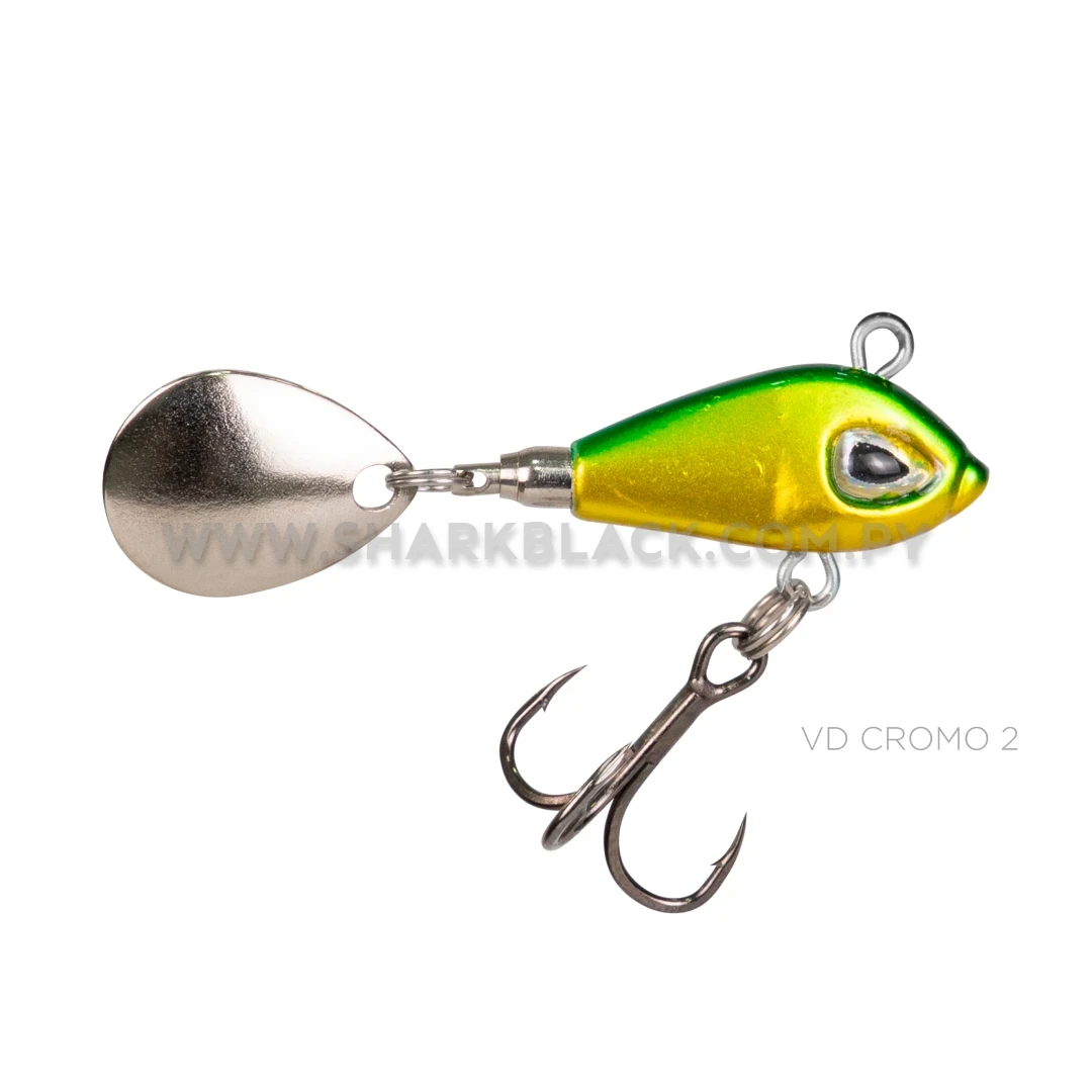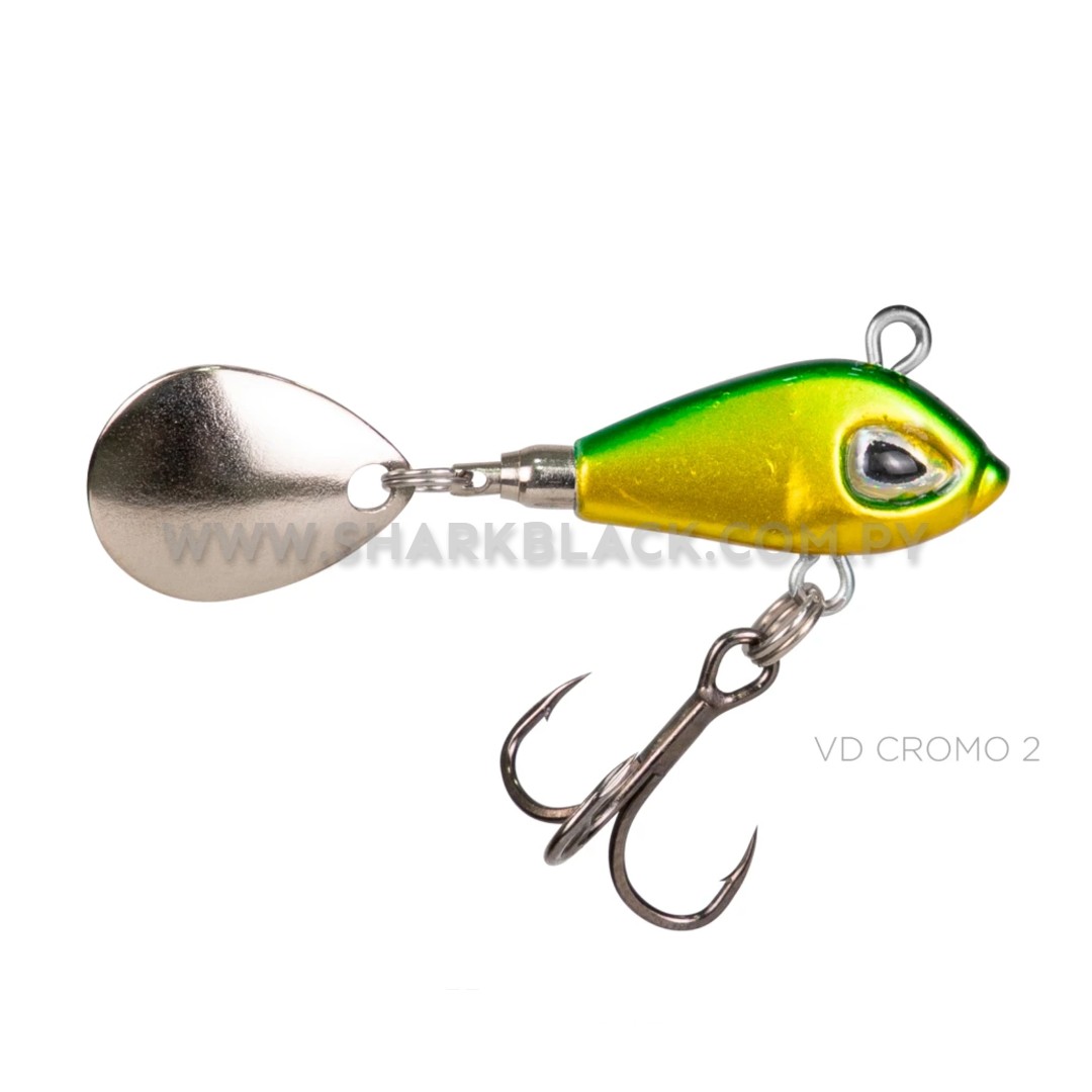Su diseño incorpora una cucharilla giratoria tipo spinner que genera vibraciones constantes y reflejos intensos, atrayendo peces incluso en aguas turbias o con poca actividad. Gracias a su cuerpo metálico compacto, permite lanzamientos largos y precisos, ideal tanto para pesca desde costa como embarcado.