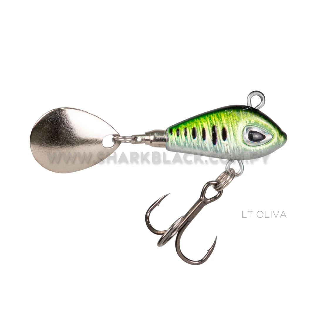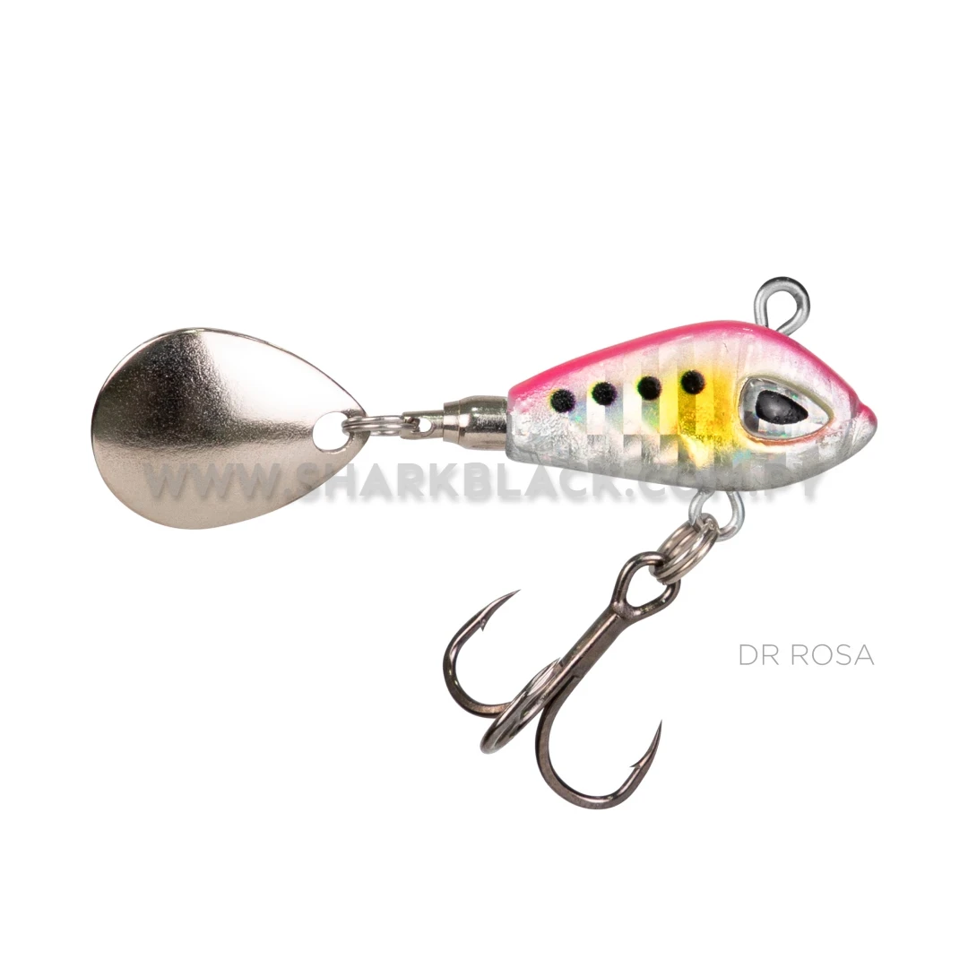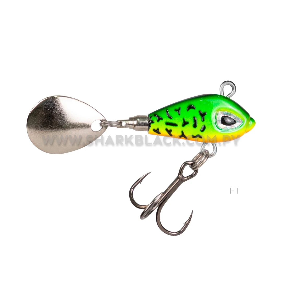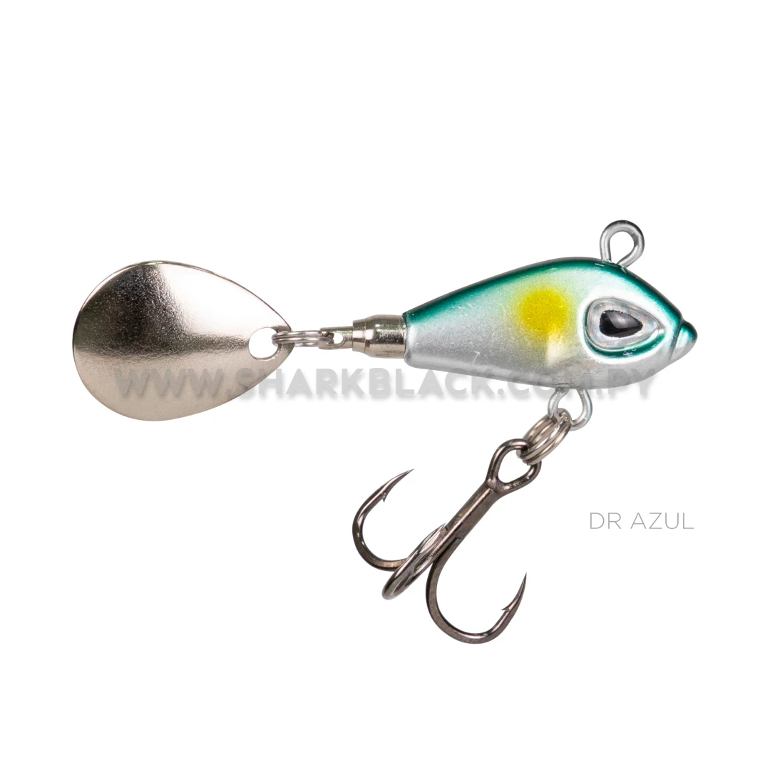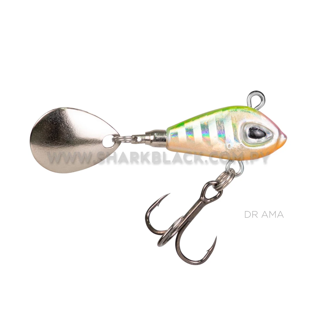 Su diseño incorpora una cucharilla giratoria tipo spinner que genera vibraciones constantes y reflejos intensos, atrayendo peces incluso en aguas turbias o con poca actividad. Gracias a su cuerpo metálico compacto, permite lanzamientos largos y precisos, ideal tanto para pesca desde costa como embarcado.