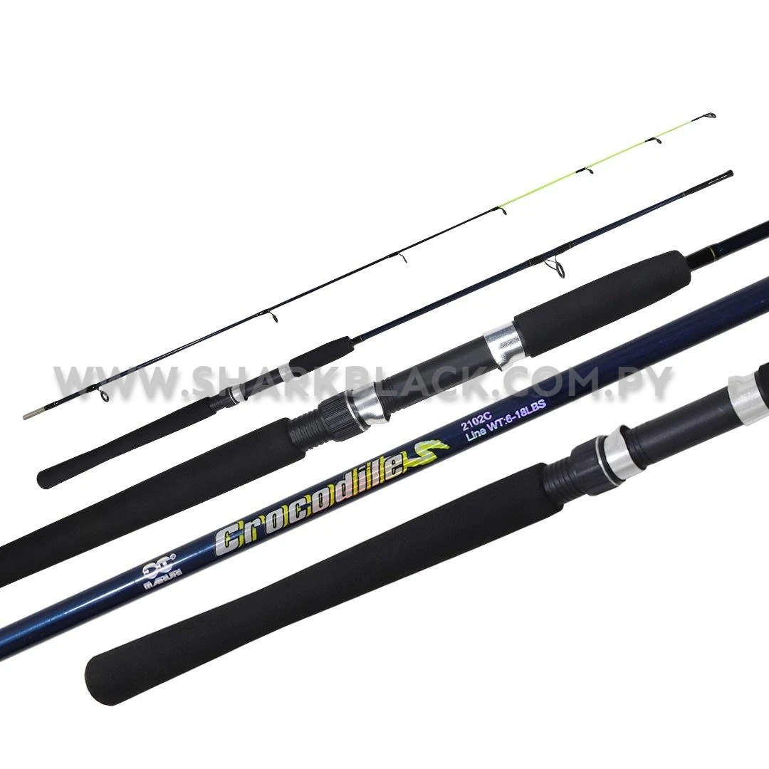 La Vara Crocodile está fabricada con fibra de vidrio maciza, lo que le brinda una excelente resistencia y durabilidad frente a condiciones exigentes. Con capacidad de hasta 18 lb, es ideal para la pesca de especies medianas y grandes. Disponible en versiones de 1,95 m , cuenta con mango ergonómico recubierto en EVA para mayor comodidad y precisión durante el lanzamiento. Sus dos tramos facilitan el transporte sin comprometer la firmeza.